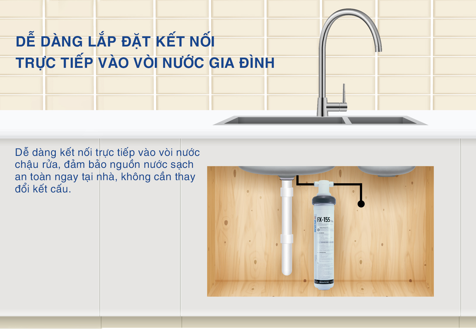 Dễ dàng lắp đặt: FLUUX FX21S dễ dàng lắp đặt nối tiếp vào vòi nước của chậu rửa hoặc vòi nước gia đình mà không làm giảm áp lực nước. Điều này rất phù hợp cho những không gian gia đình và cả các cơ sở kinh doanh muốn tích hợp hệ thống lọc nước tại chỗ.
