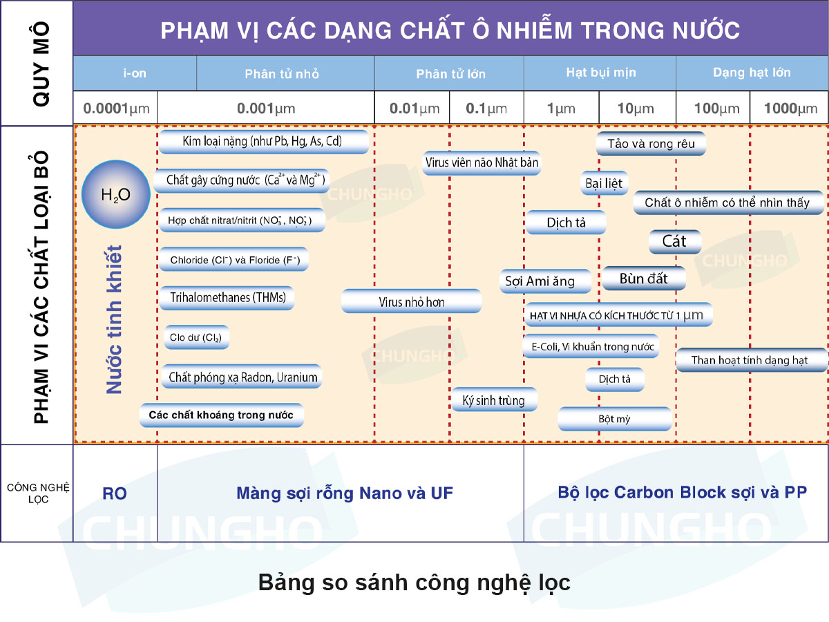 Ngoài ra, ChungHo tự hào cung cấp các dòng máy lọc nước tích hợp công nghệ RO, Nano và UF, đáp ứng mọi nhu cầu lọc nước từ cơ bản đến cao cấp. Các sản phẩm của ChungHo đều được kiểm định và đạt các tiêu chuẩn quốc tế khắt khe như NSF, WQA, đảm bảo chất lượng nước an toàn tuyệt đối cho gia đình bạn.